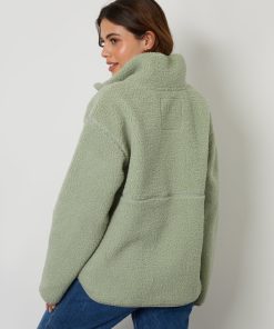 Women’s Ecru Longline Fleece Borg Toggle Coat
